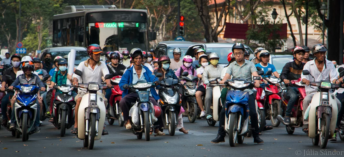 When we wrote the post on our first adventures in Vietnam we were still thinking, that Hanoi tops the traffic challenge in Southeast Asia. But then we visited Saigon!!!! The constant wall of motorbikes which we had already known, was aggravated by a similar number of cars, and instead of the 2 lane streets, Saigon is filled with 6-lane avenues. So crossing these streets is even more of a bungee jumping experience… But the “close your eyes and pass through without stopping” method has also worked out here.