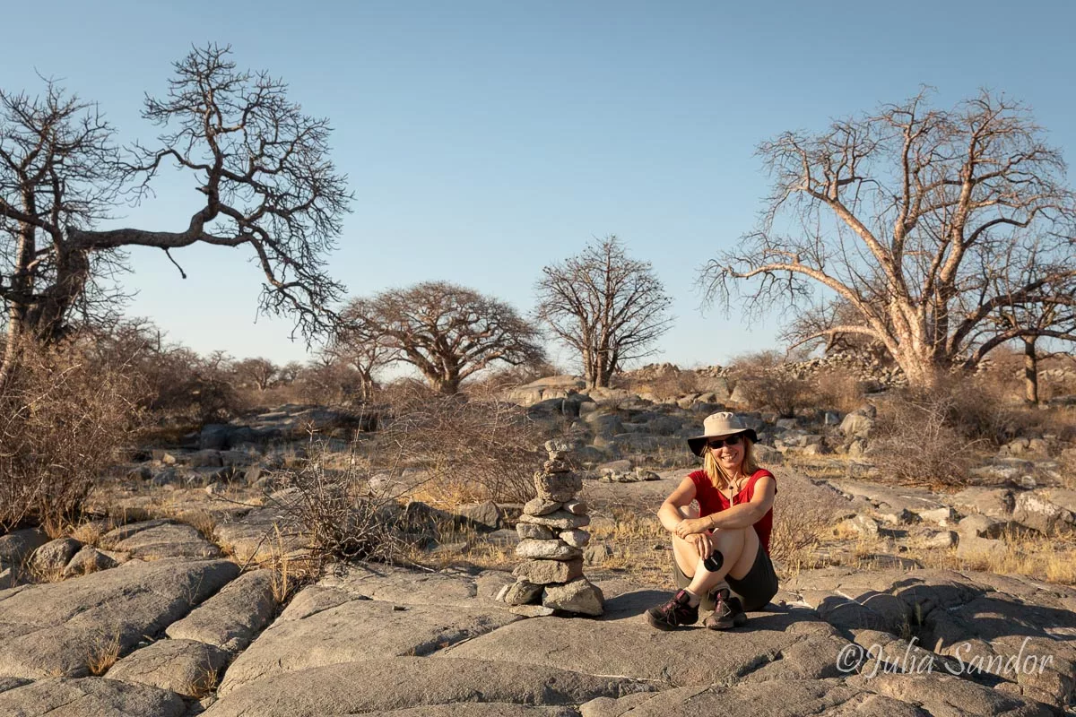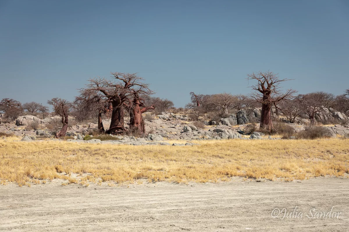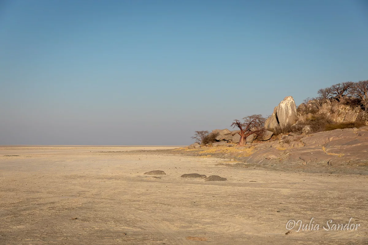 Kubu Island, although not surrounded by water anymore, is still obviously an island. It elevates in the middle of the lifeless pan as a small oasis and memory of past times. Hundreds of Baobab trees scattered through the rocky landscape, rocks which had been rounded by water thousands of years ago.