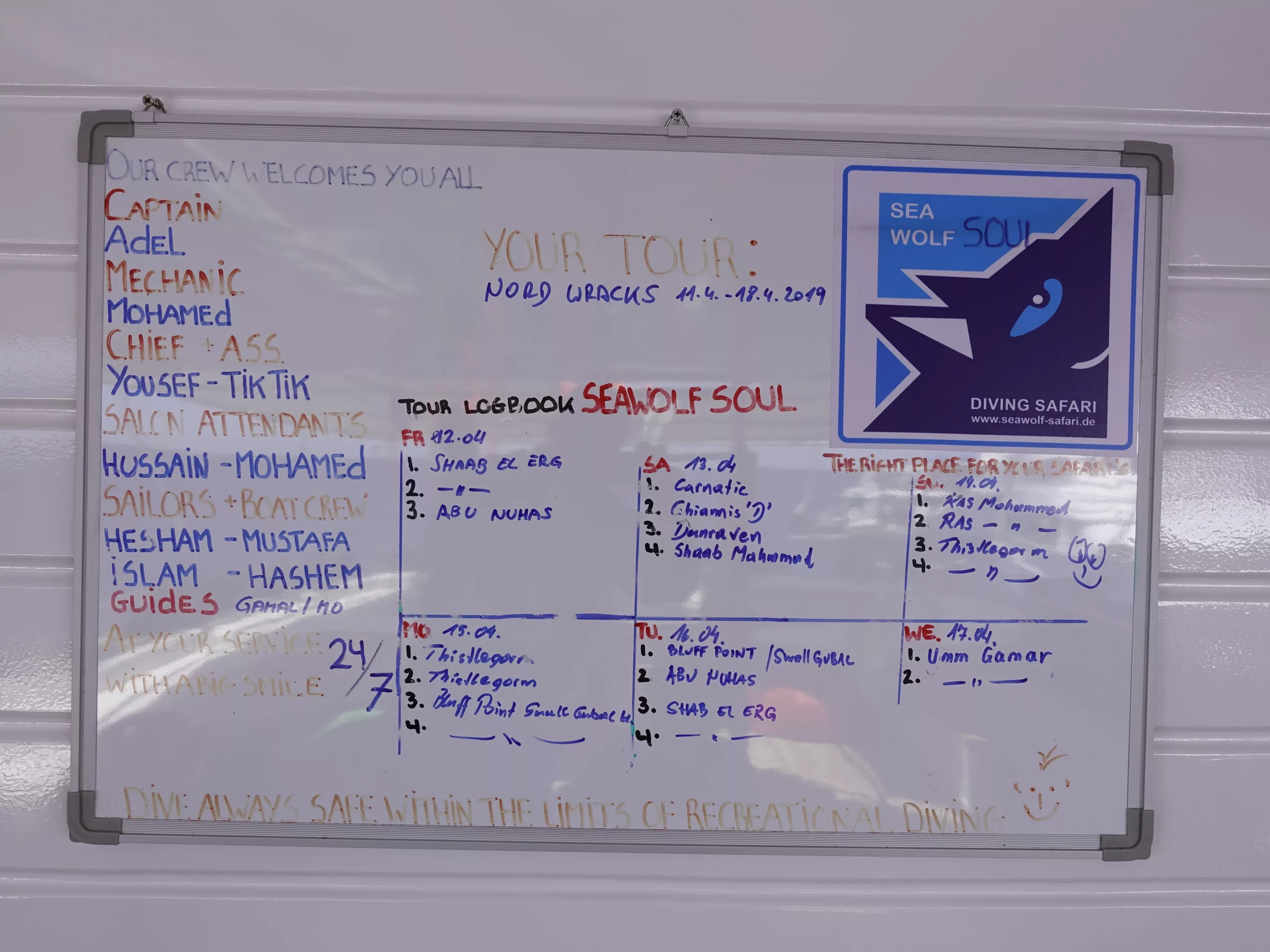 After an early 4-hours flight from Vienna we arrived in Hurgharda. Customs control as well as the transfer to the harbor went smooth and we checked in to our new home for the following seven days on the Seawolf soul. It’s a very modern, well operated and maintained diving ship.