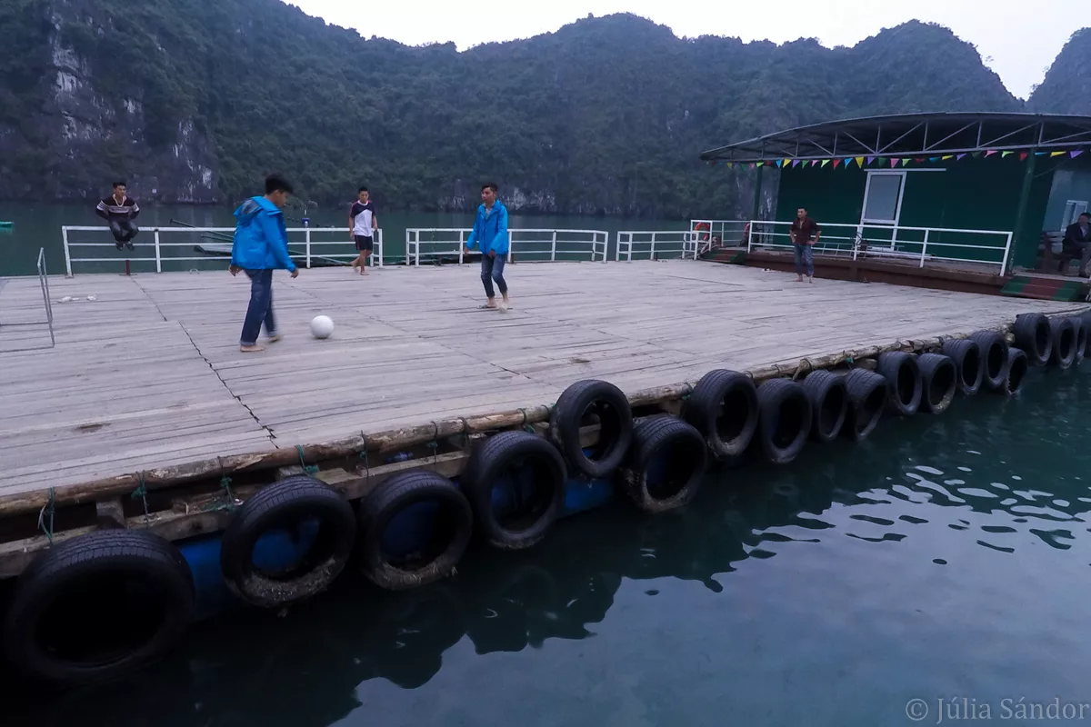 However, first morning at 7 AM there was desperate knocking on our door: 2 guys from reception wanted to come into our room. As we are not really early birds, we were quite annoyed in the first moments, until they have explained us that our upstairs neighbors are stuck in their room and they need to climb up through our balcony to rescue them… It was so surreal, that our grumpiness was gone in a moment. And after trying to fix the door in vain for about half an hour, they came again with a ladder and a young couple (our age :) ) climbed down to our balcony with their suitcases to reach their bus to Ha Long Bay.