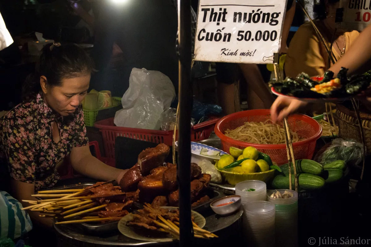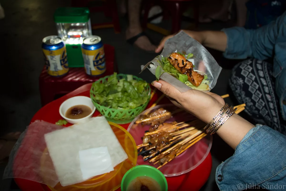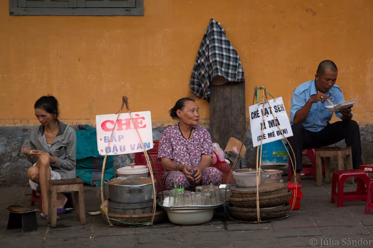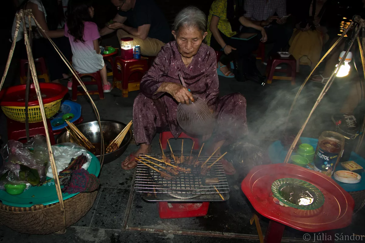In the evenings small kitchens open on every corner, offering 1 or 2 types of food each, which you can eat sitting on miniature stools on the pavement. We have been told by a street-cook lady, who saw us hesitating: “if no try, you never know”… and as she was right, we started trying out things, like White Rose dumplings, Siamese Pork BBQ, Lotus Salad, Mango Cake and many things where we have not even the slightest idea what we were eating… But all of them were rather tasty, we can promise.