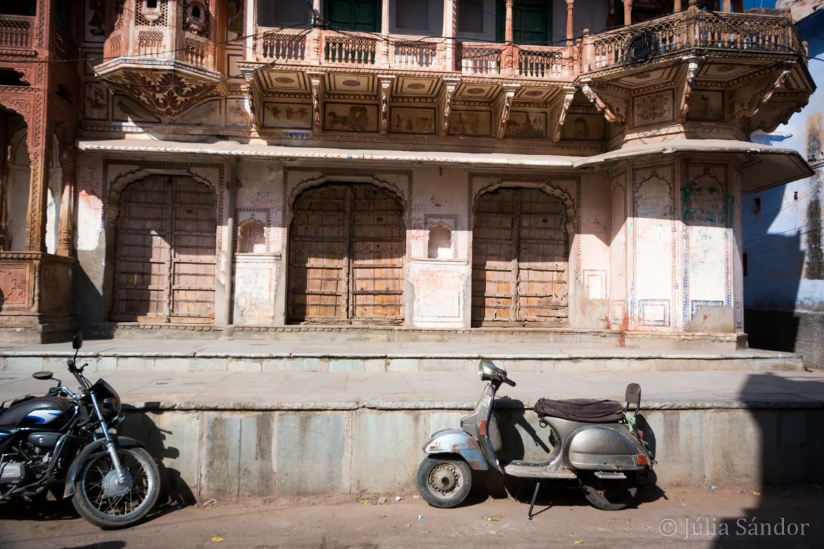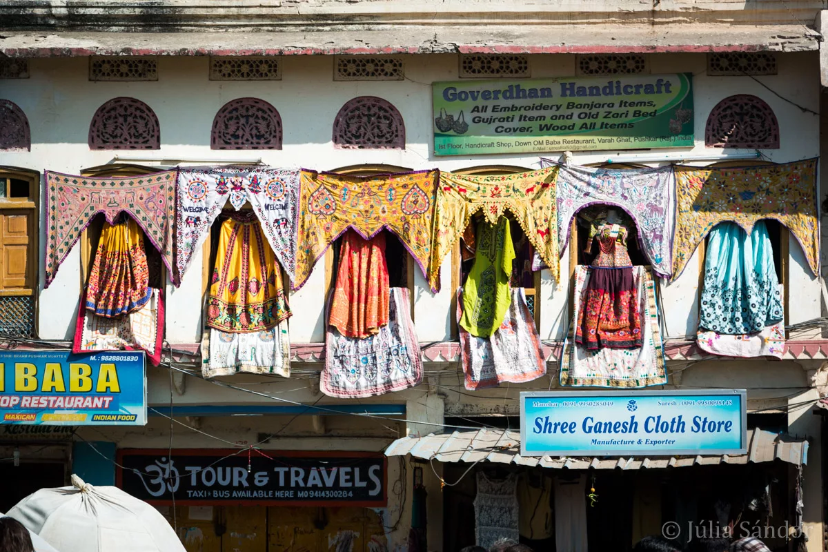 Pushkar was another special spot on our journey. The lake is told to originate from a flower petal falling from Brahma’s weapon during a fight with the demon Vajranabha. The lake and the Brahma temple (one of only five in India) are important pilgrimage destinations, and thousands of Hindus visit it each year for a bath in the holy water of the Pushkar Lake. Around the lake there are temples and Ghats (access to the holy water, in fact stair cases) everywhere, where the purification rituals take place.