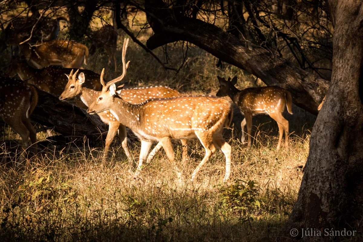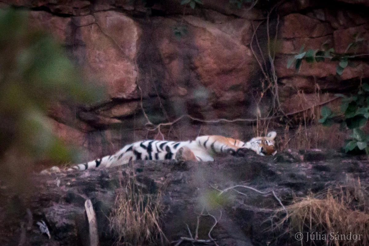 India is also famous for its tigers. Every year thousands of tourists visit the different reserves to catch a glimpse of this majestic animal. We also visited one of the nature parks in Ranthambore and made 2 safari rides. And although it is not the best season for sighting tigers (vegetation is too dense at the moment) one ride was successful: we saw – at least in the distance – a tiger resting on the hill. (a bit of a de-ja vue with our leopard search in Southern Africa).