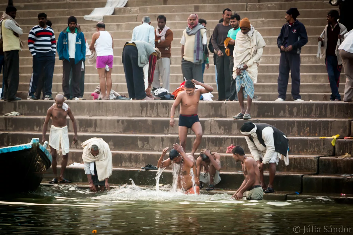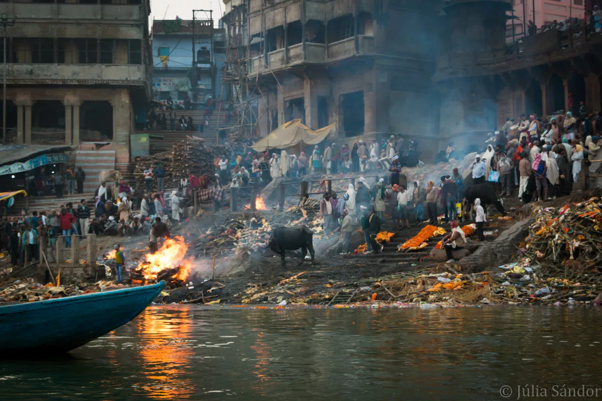 Beside the holy washing and the cremation ceremonies, different rituals of life and death take place here every evening and in the early morning hours. Fascinating choreography of dancing, chanting, singing, burning incense, “playing” with fire and masses of pilgrims. We could observe these beautiful ceremonies taking place on the banks of the river from a boat, which gave us the proper view but also the decent distance.