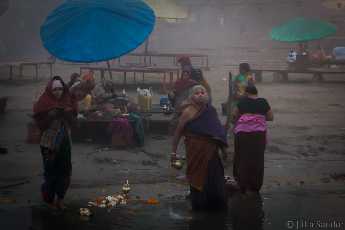 Pilgrims come here to the Ghats of the Ganges to wash away their sins in the sacred waters of the river, to cremate their loved ones, and to die here. They believe if their ashes are thrown into the river they will be liberated from the cycle of rebirth.