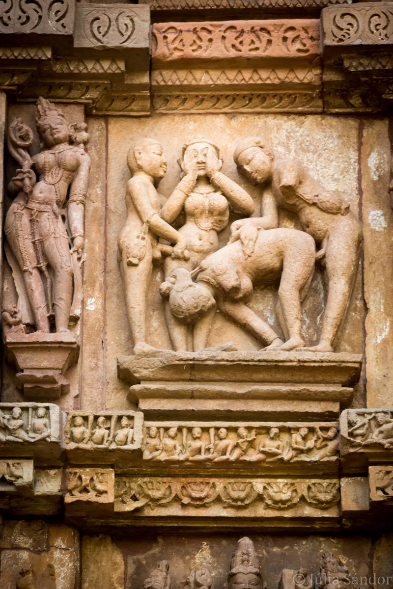 The Khajuraho Group of Monuments is a group of Hindu and Jain temples in Madhya Pradesh. The temples standing here are famous for their nagara-style architectural symbolism and the erotic sculptures decorating them.