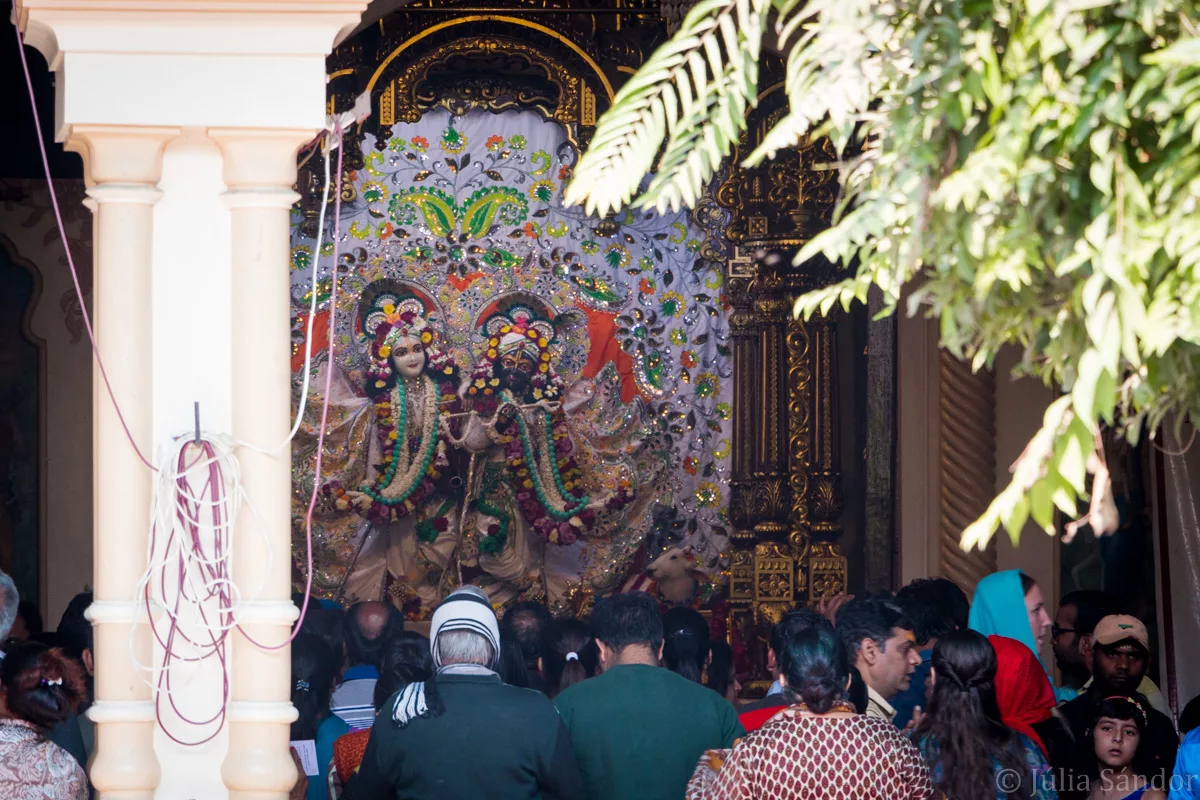 A very happy ambience expected us in Vrindavan, the city of the Krishna devotees. The city is full of temples, most of them dedicated to him. The temples are all very spectacular, decorated with colorful scenes from the life of Krishna and cheerful music is playing from the loudspeakers.