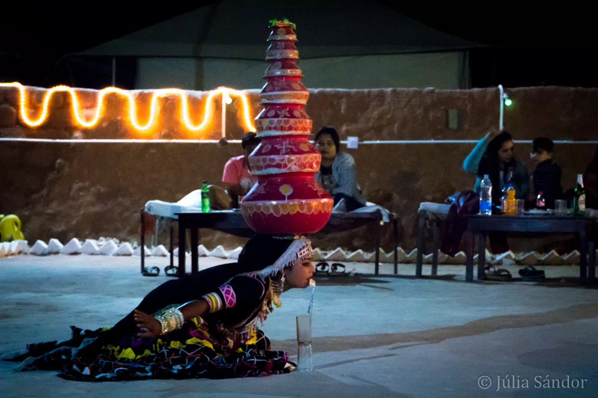 In the evening you are served traditional meals from the region – all vegetarian –, and a dance and music show is performed. As nights get very chilly – and you will most probably sleep either under the stars or maximum in a tent – don’t forget warm clothes…