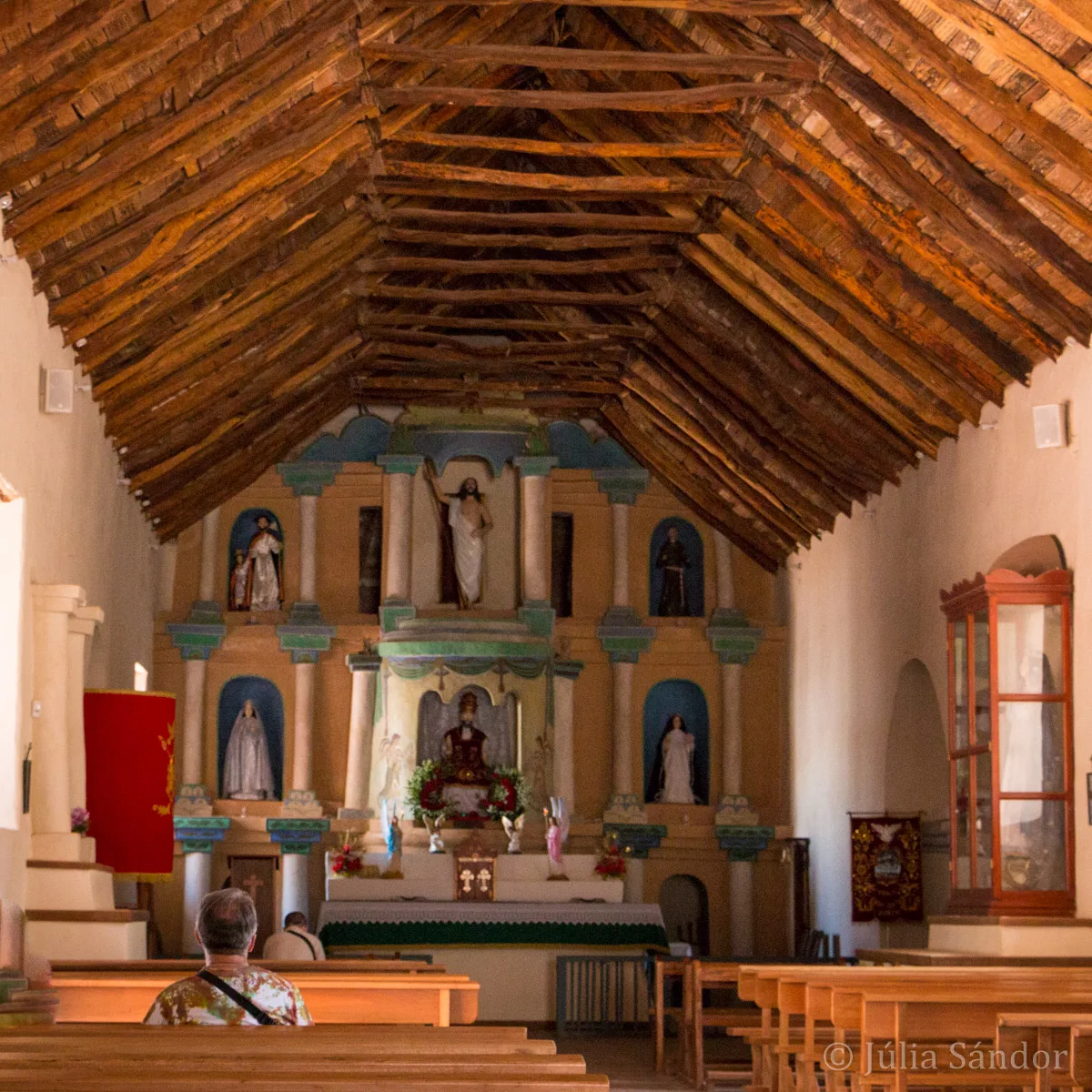 Although at first we did not recognize the well-known bright white church (which after renovation is now brown) and passed by, the cactus wood roof and the friendly interior of the building compensated fully for the change of color