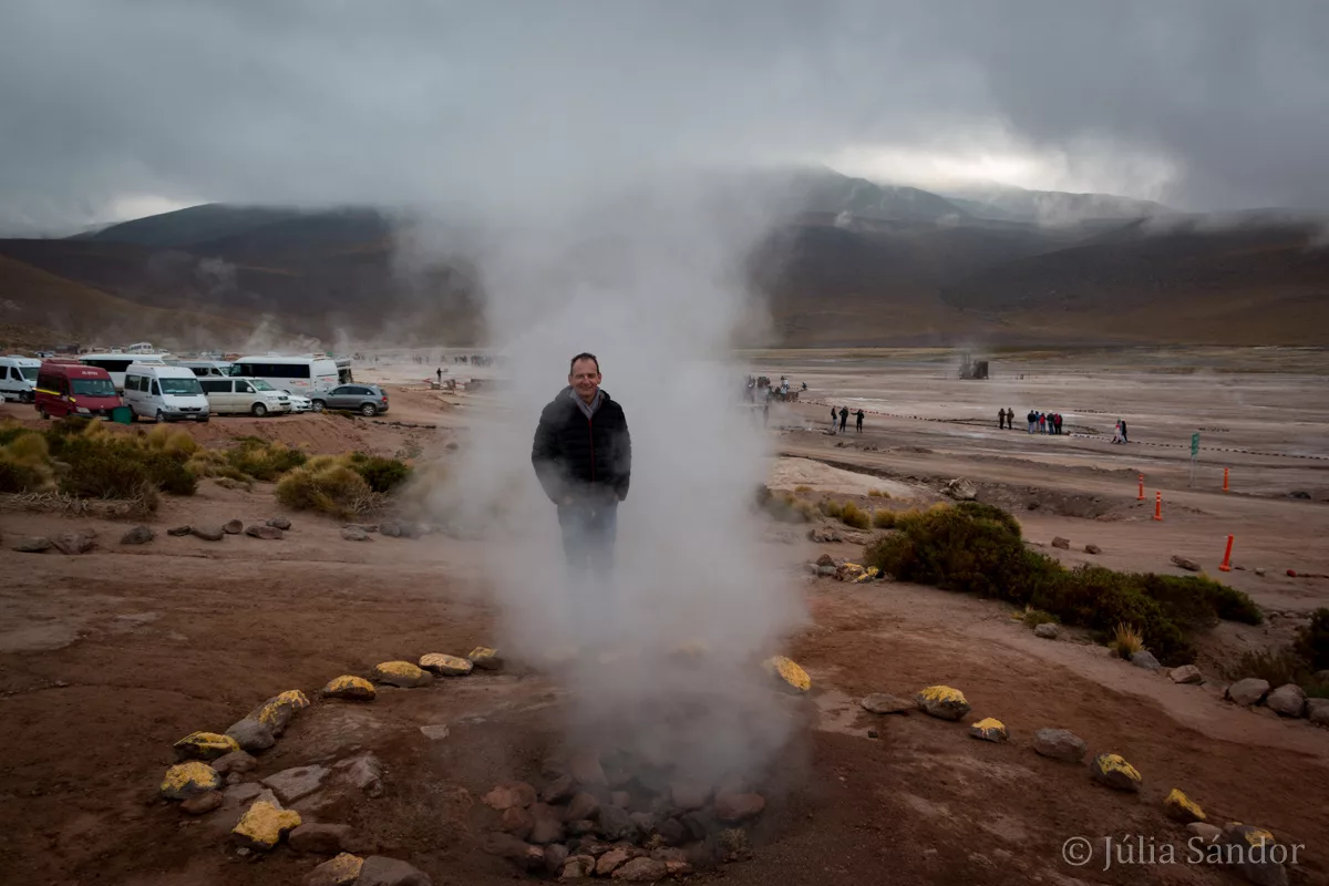 Although this spot is extremely touristic, you have to get up REALLY early to arrive for sunrise and the morning temperatures at 4.400 meters are obviously cold, it is a unique experience to see the steaming and bubbling geyser field in the light of the first sunbeams.