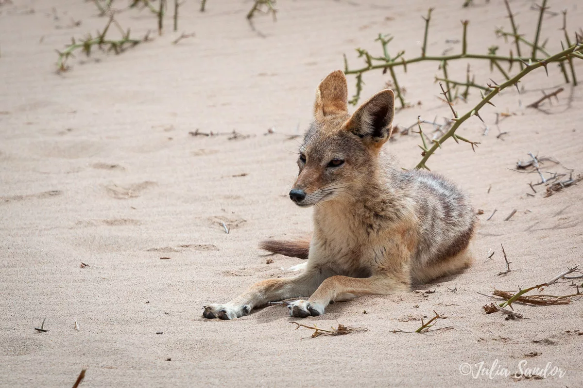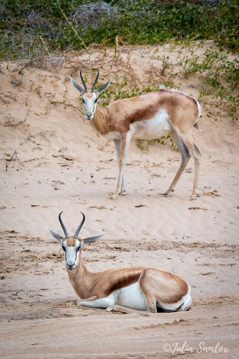 The way back is real fun, Ati lets the car down on dunes which have an inclination of about 50-60 degrees. The girls are loudly protesting on the back seat, but no use – we are already half way down. Amazing feeling. We see some jackals and springboks on the way, and we arrive back to civilization.