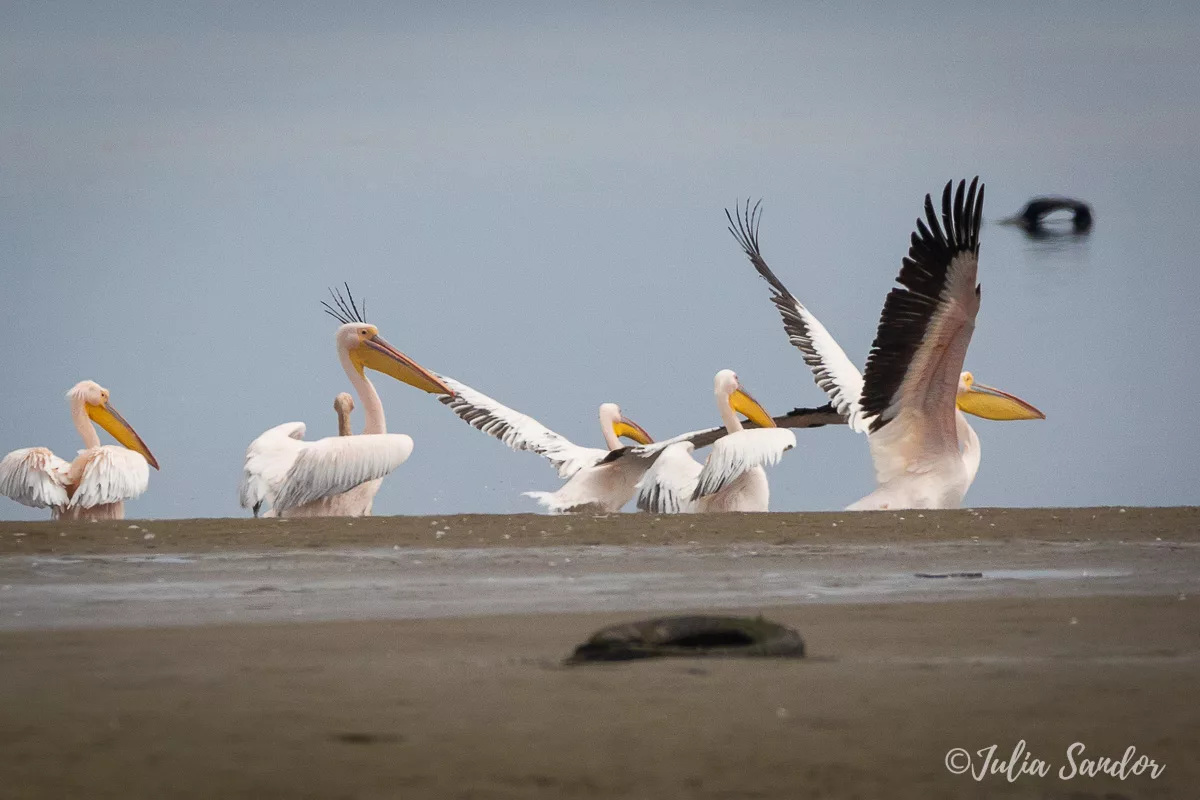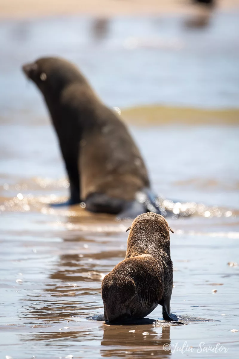 As the first destination we choose the famous Pelican Point. A 12 km drive in pure sand onto a peninsula which is already partially under water when we enter. Several tracks in the sand from cars that entered before, we try to guess which ones will not end in mud or water. We succeed but are happy to be joined by another car – just in case…