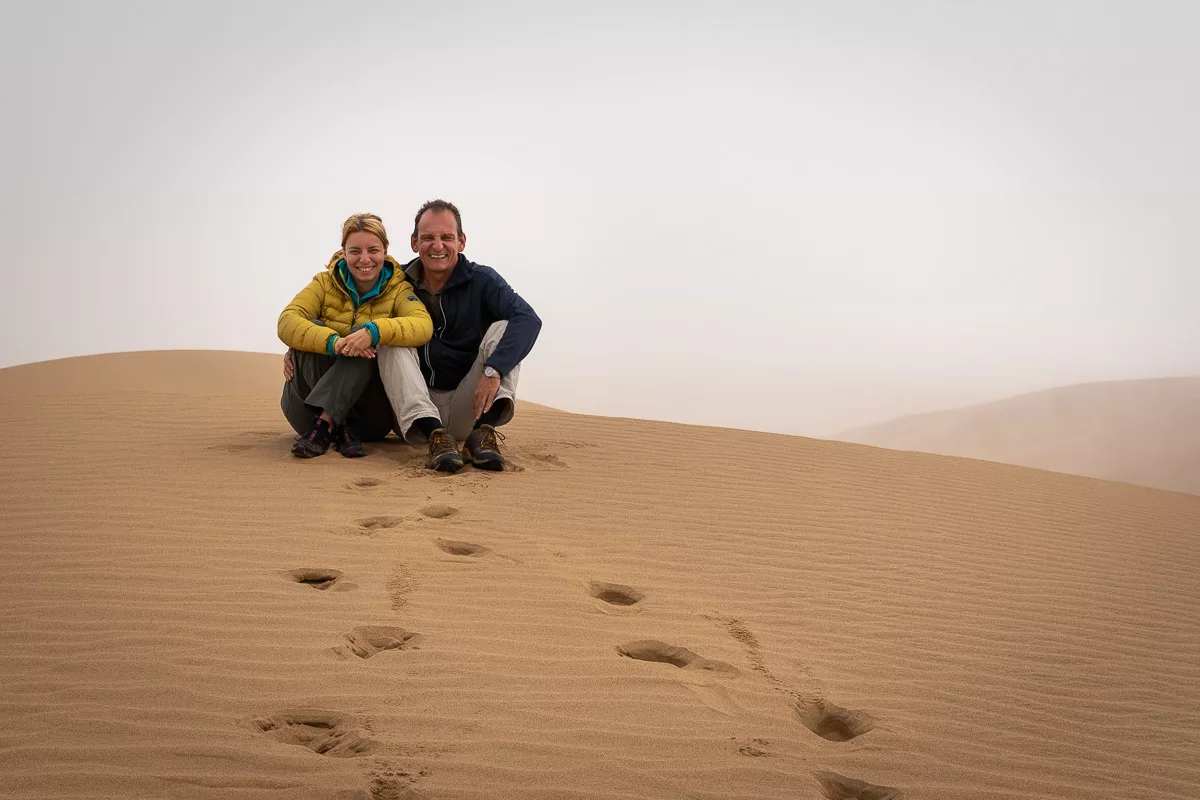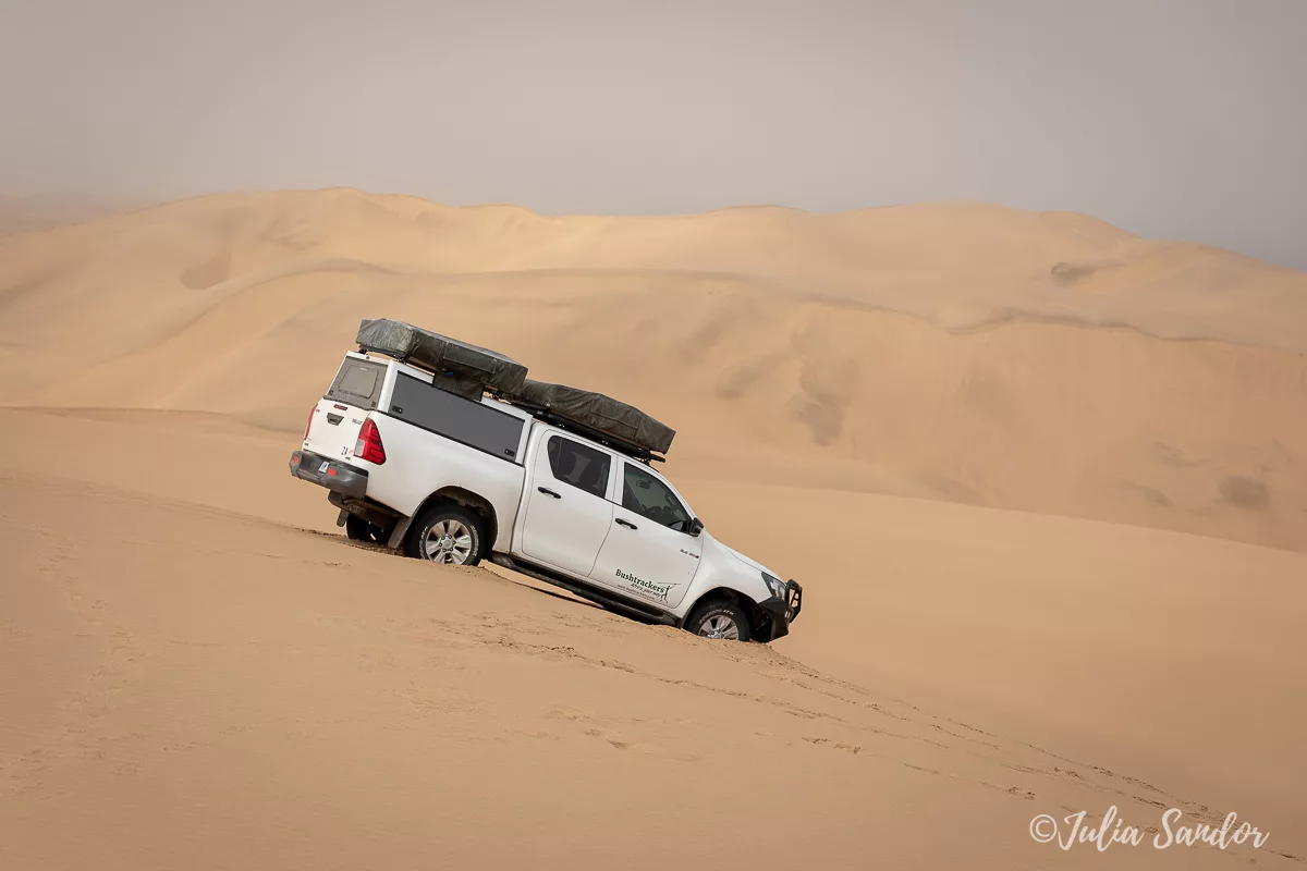 The 2 trips we make in the area of Walvisbai give us a totally new perspective on off-road driving. However, the drive through the sand to Pelican Point – a peninsula which more or less disappears with high tide – can still be topped by spending half a day in the sand dunes at Sandwich Harbor.