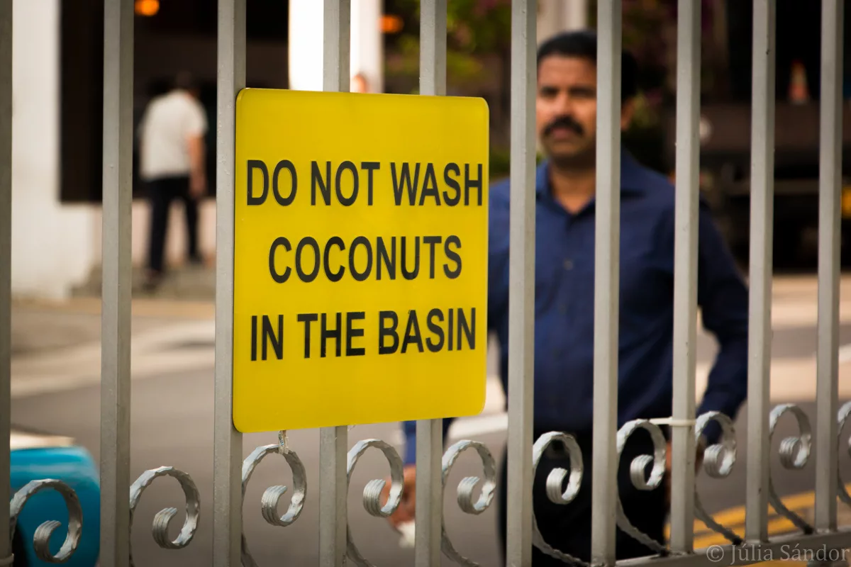 The third peculiarity of Singapore is the number of activities you can get fined for, and what makes it even odder is how often and prominently your attention is being drawn to that. Just to enlist some, there is a fine for smoking if there is anything above you (even a branch of a tree or a canopy); you have to pay if you cross the street at the wrong place or if you litter; taking durian into your hotel room, feeding fish or monkeys and chewing a gum is also on the long list of penalty reasons. And our favorite: spitting on the street costs you 500$ (but this one we were rather happy about, as this is a common habit in the rest of the region).