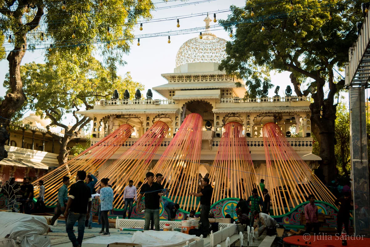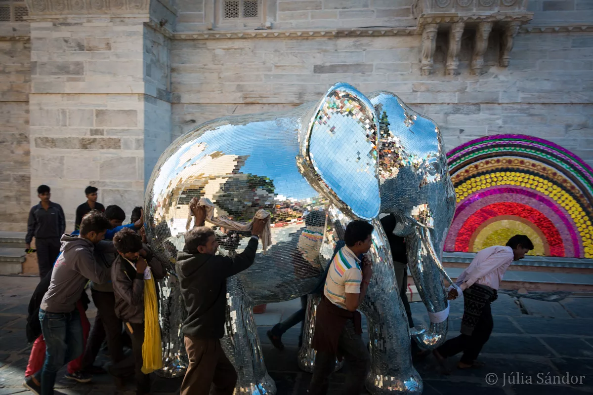 At the time of our visit, the whole City Palace was in a state of transformation. Hundreds of workers were building stages, tents and dance floors; decorating with flowers, ribbons, colorful adornments and life-sized crystal elephants (favorites of Julia). At first we thought they were setting up the premises for a festival, but soon we learned they were preparing a private wedding, which would take place in a weeks’ time. Everything was reflecting unimaginable wealth – in strong contrast to other sides of India’s population…!